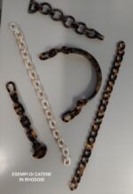 Da luglio 2020 abbiamo integrato la produzione di accessori in rhodoid (acetato di cellulosa), materiale plastico organico di basso impatto ambientale composto da polpa di pioppo e fiocco di cotone.